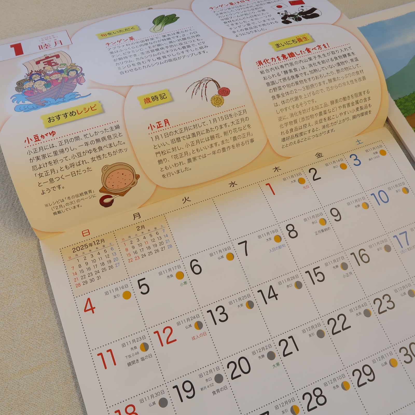 伝統行事や季節ごとの食べ物のレシピなど、様々な豆知識が学べるカレンダーです😄