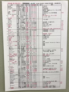 1月15日(月)〜の野菜入荷予定表です。